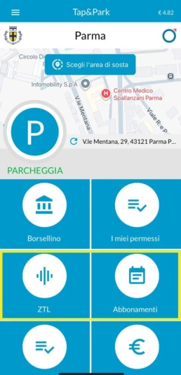Accedi alla sezione ZTL dalla schermata inziale di Tap&Park e procedi con l'acquisto del ROZ.